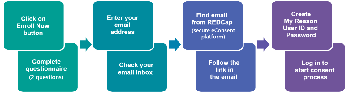 Anyone who is 18 years or older (subject to applicable state laws), resides in the United States, Puerto Rico, or Guam, has the legal authority to consent, and is capable of providing informed consent can enroll in My Reason®.